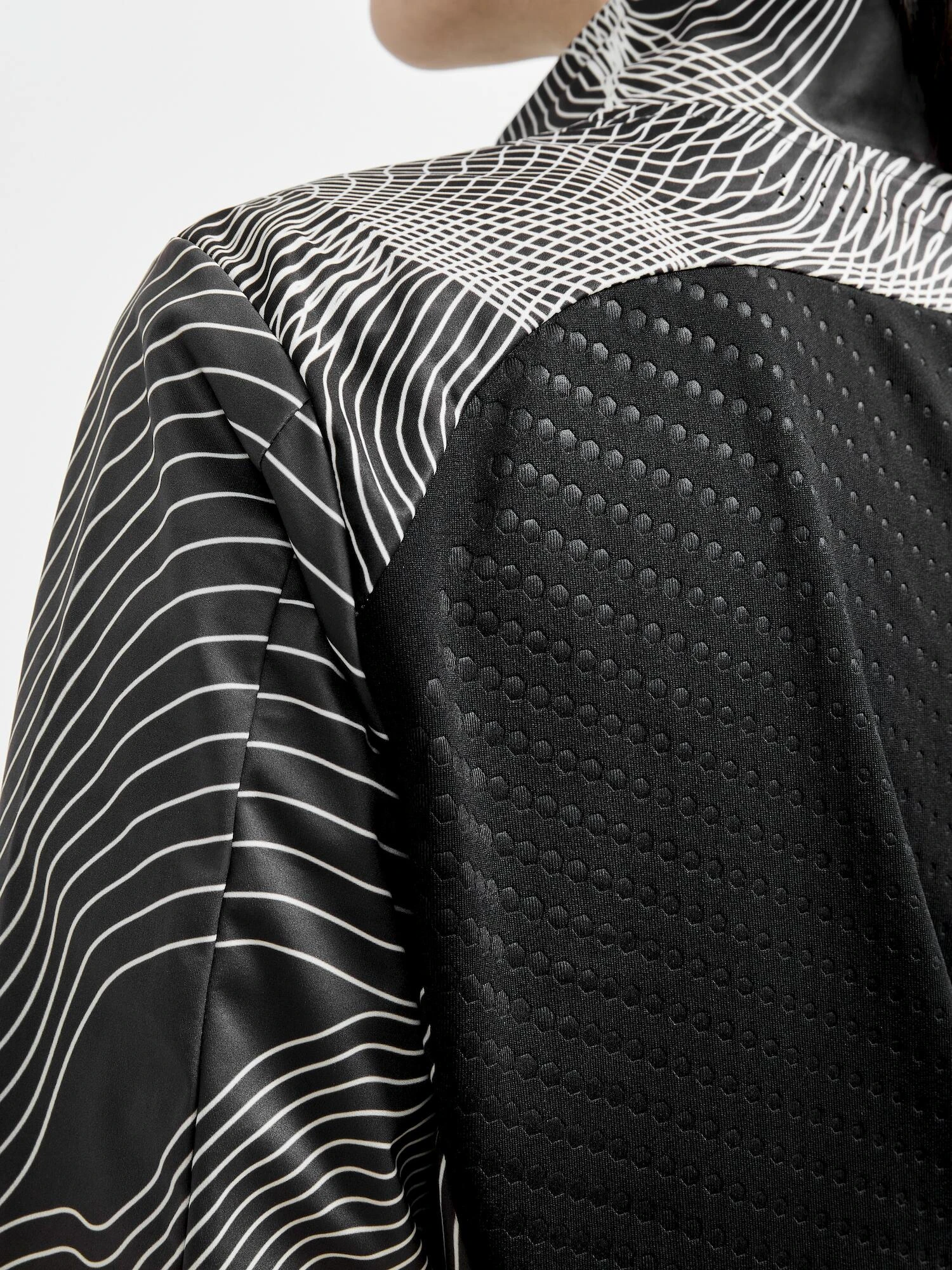 - Torso vorne: Vorne: 100% Polyester Mitte 100% Polyurethan Rückseite: 100% Polyester Ärmel: Vorne: 100% Polyester Mitte 100% Polyurethan Rückseite: 100% Polyester Rückseite: Torso: 87% Polyester recycelt 13% Elastan